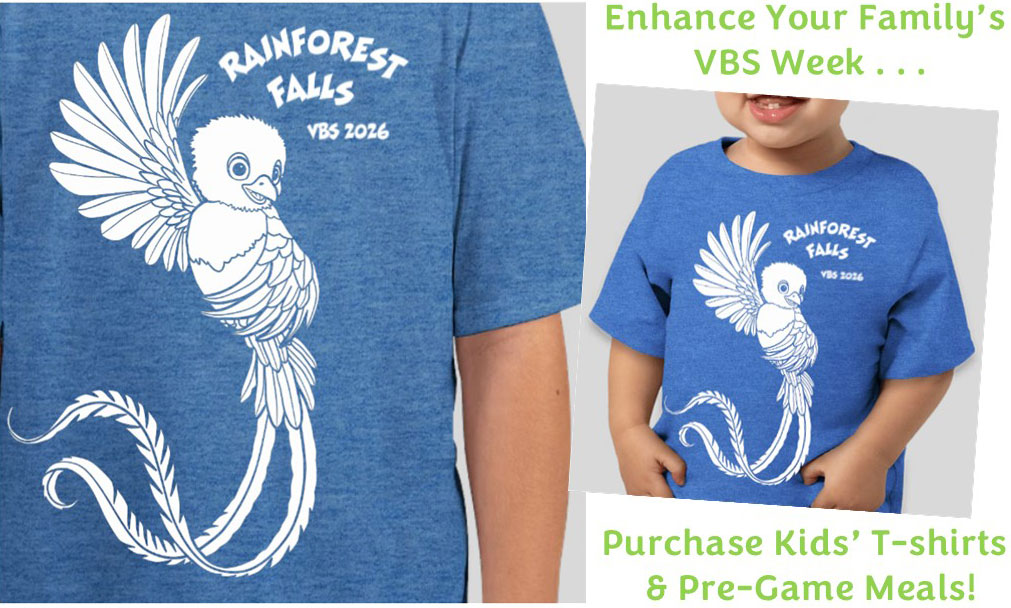 OPTIONAL KIDS VBS T-SHIRTS AND MEALS AVAILABLE!